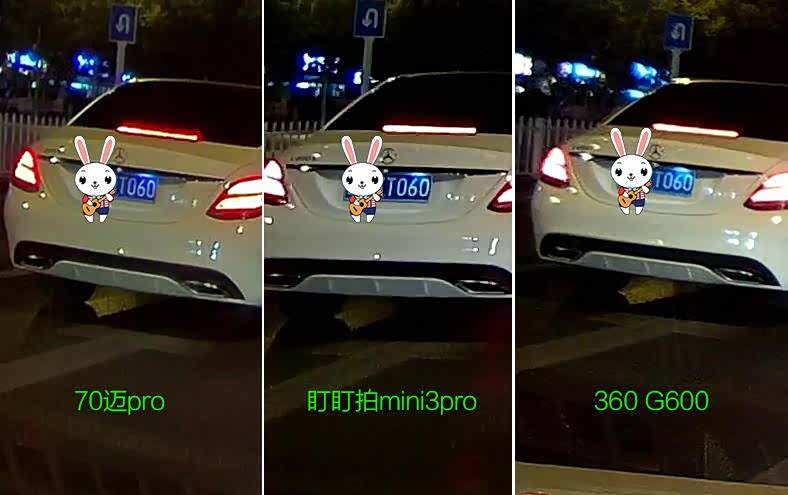 3.夜间灯光抑制方面,70迈pro抑制力更好,盯盯拍次之,360较差。