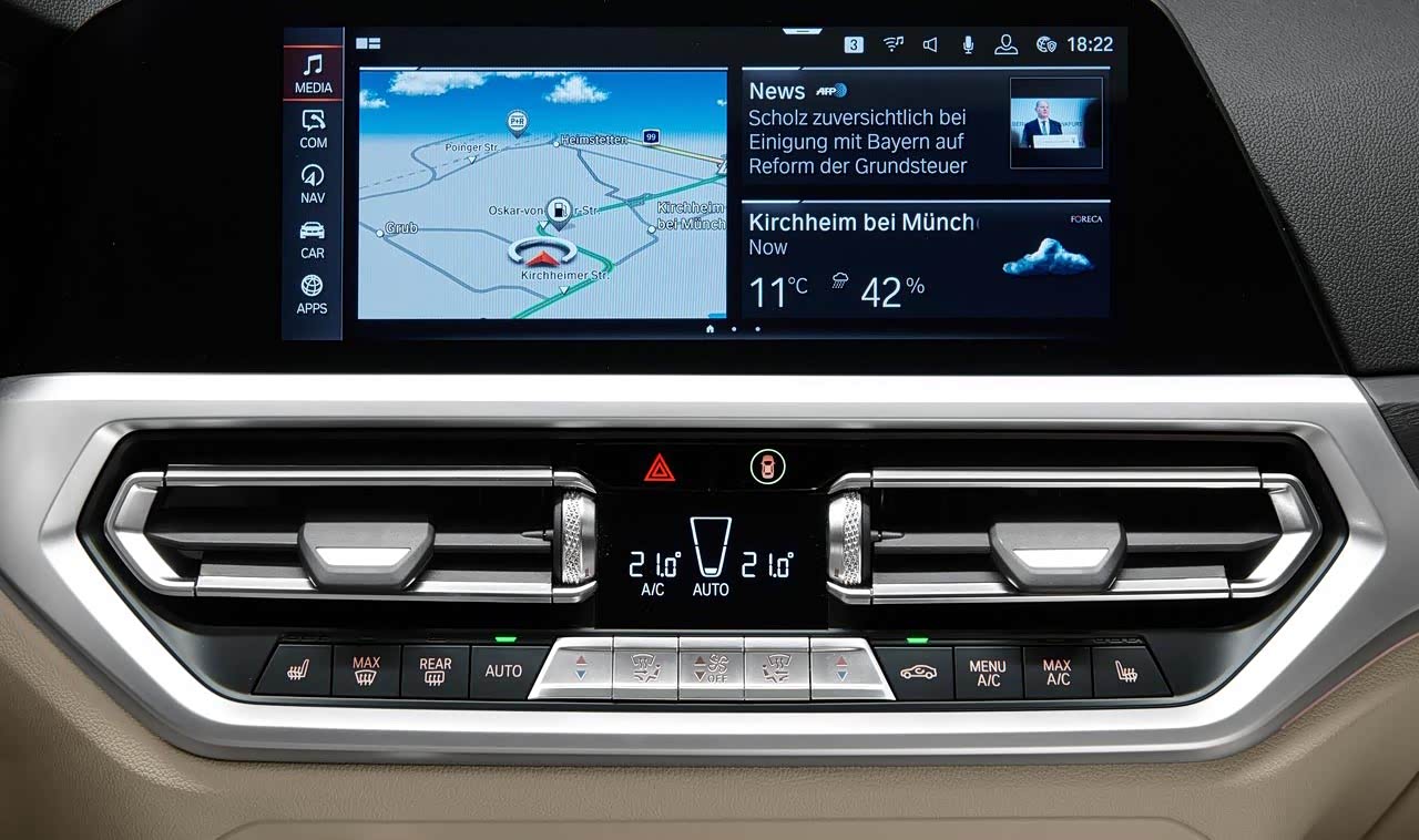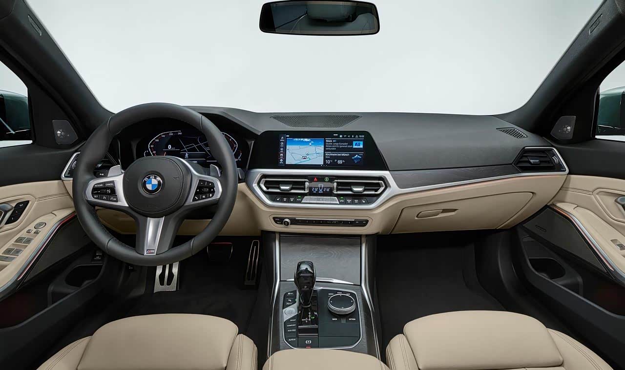 内饰依然是承袭了新3系轿车现代豪华内饰风格,在设计、功能划分、用料方面都有很大的提升。12.3英寸液晶仪表盘,水晶鸡腿挡把、10.25英寸可触控中央显示屏(里面有宝马iDrive7.0最新的人机交互系统,显示分辨率和语音控制都有很大的提升)、M运动型方向盘、全景天窗、抬头显示器等。在新3系轿车上,好多都是标准配置了。