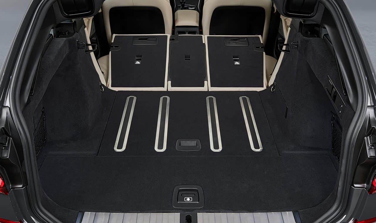 其次,在空间上的运用。除了本身旅行车更宽敞的内部空间,后备箱的实际使用中,也很有惊喜。常规情况下,其容积为500L。而后排座椅放倒,其后备箱的容积能够扩展到1510L,而后排座椅也支持40:20:40比例放倒。如果仍不满足,该款车型还提供可电动伸缩的拖车挂钩,用于牵引其它一些货物,最大拖车载荷为1800kg。新车标配电动尾门,而像宝马X7一样,后备箱的挡风玻璃能够开启,细节上更加讨好消费者。