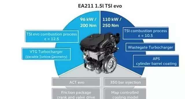 EA211evo机型的国产化目前在推进过程中。已经投产的是1.5升自然进气MPI机型,配置相对简单;增压机型进度靠后,但可能不会出现太多针对国产化的变化,所以我们以现有的欧洲EA211evo基础机型为例介绍下这台基石机型。