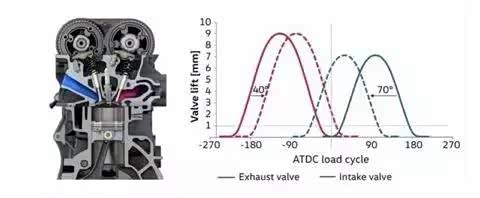以EA211为代表的小排量化机型在高压缩比、高进气压力的条件下面临工质燃烧的稳定性和经济性问题,逐渐达到这一设计减耗的边界条件。为了进一步提高燃烧效率,evo机型采用了类似EA888 Gen 3B机型上的“米勒循环”,即通过进气门提早关闭缩短压缩行程,工质在压缩行程中充分混合的同时达到较低的温度,以此提高燃烧时的稳定性和效率。