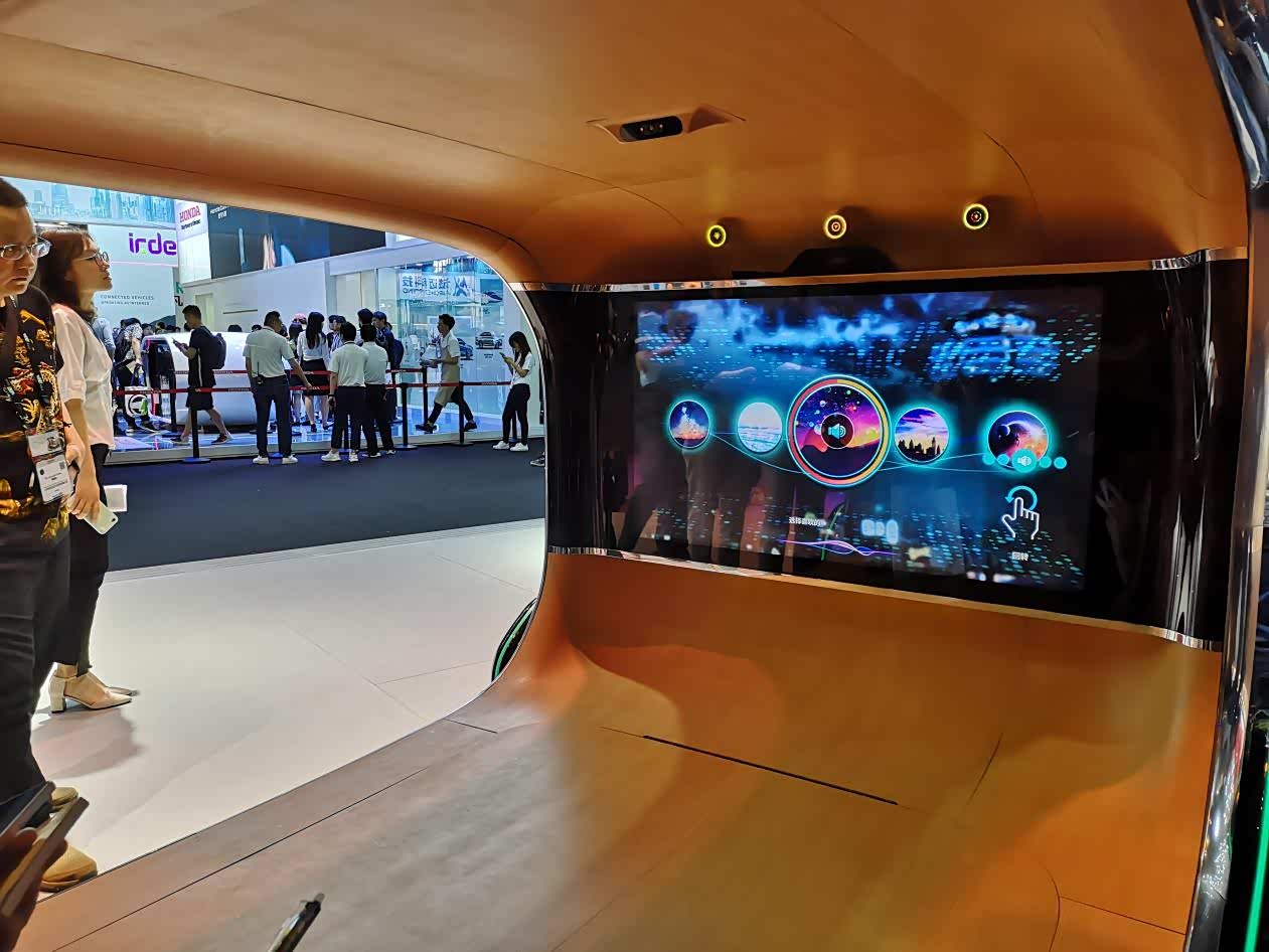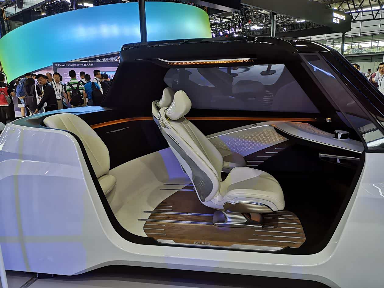 现代摩比斯还展示了最新成型的自动驾驶座舱技术。