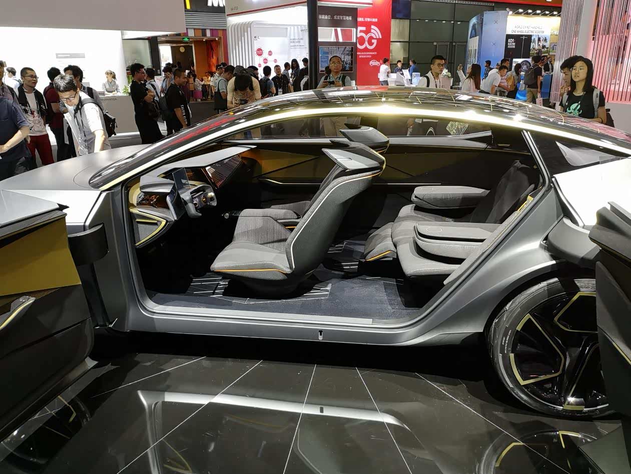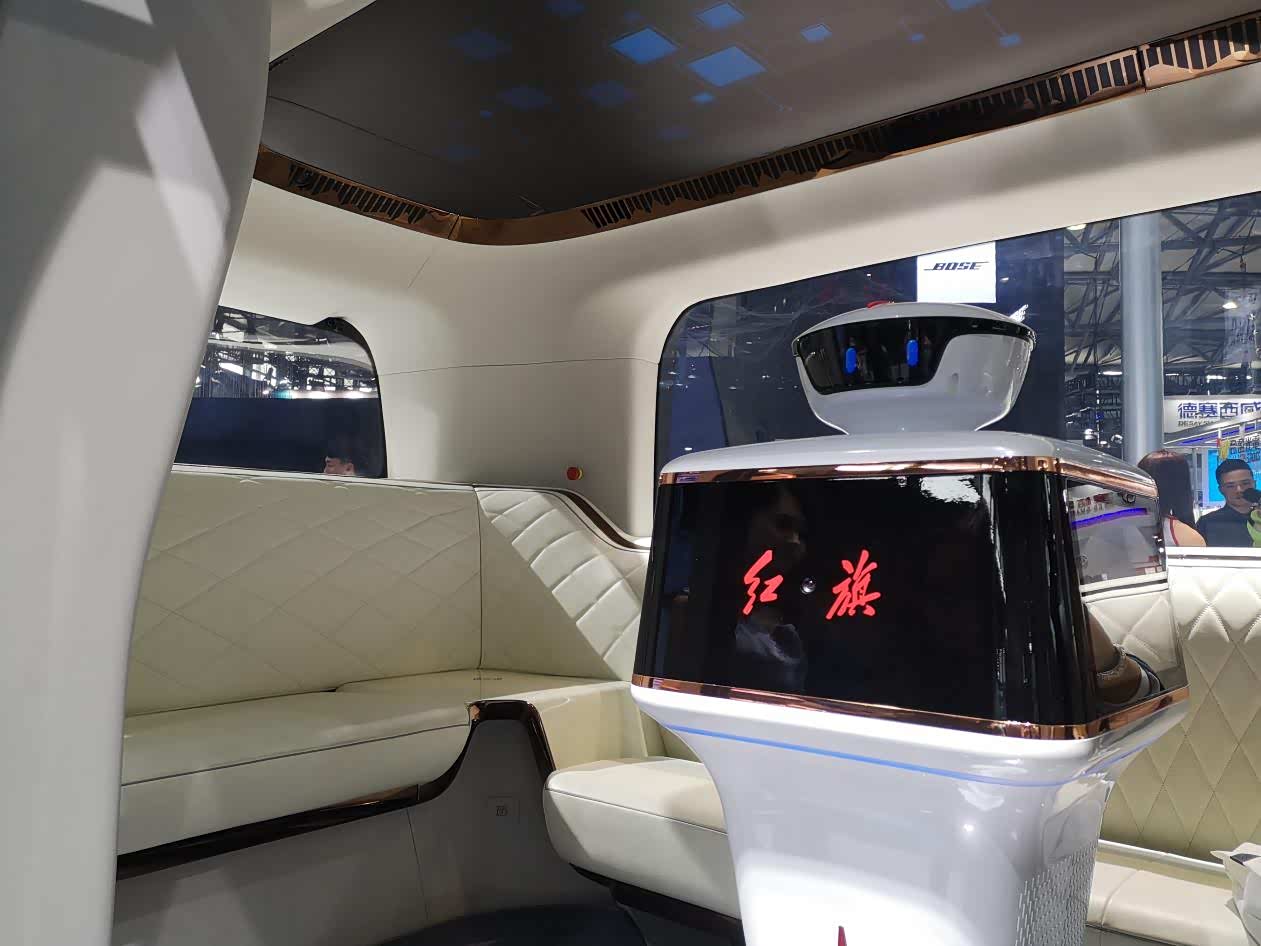 红旗,这个品牌最近可是处于市场宣传的火热期。步入红旗展台,吸引我的并非毫无内在传承的Q5L,啊不是,HS5,而是一旁的“智能小巴”。其展示了红旗“阩旗计划”技术主题打造的“五觉”理念,向公众展示了由概念到场景的延伸,解释了红旗对于智慧城市、多彩生活、共享出行的理解。作为共享出行终端,小巴之间还可以通过串联来实现充电、共享信息,通过并联来实现空间共享。