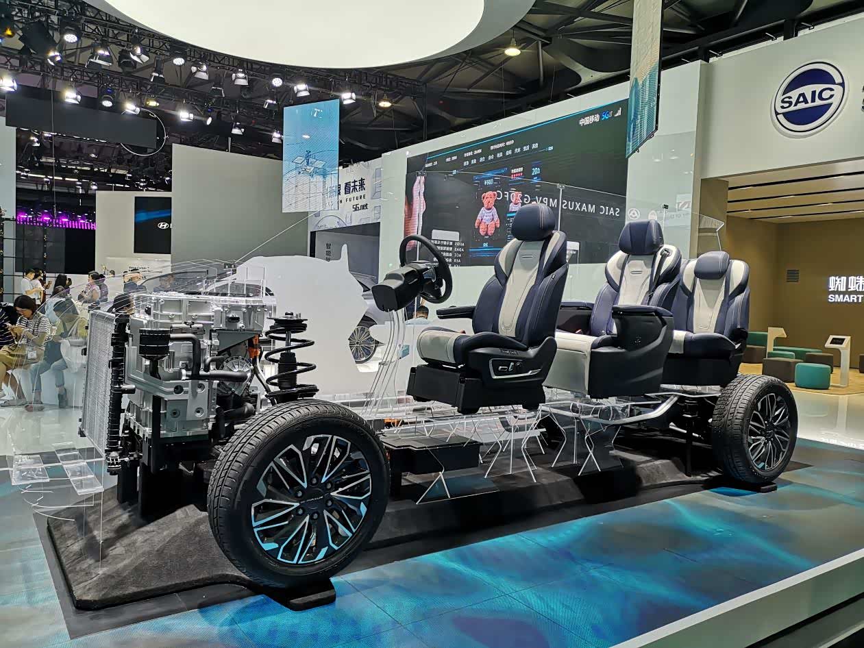 NEXO在欧洲其实已经上市,通过两台展车和两组交互体验区,现代展示了其氢燃料电池车辆的日常生活。现代声称,NEXO采用空气箔片轴承式空气压缩机和无氢气循环泵等科技,可达到60%的动力效能,充满一次燃料最长续航里程可达800公里(NEDC)。车辆动力系统可实现零下30℃的冷启动,整个系统耐用性可达10年/16万公里。NEXO在行驶过程中,可以净化99.9%的颗粒物和细粉尘,行驶一小时即可净化约26.9kg的空气。而荣威Vision i的内饰相当闲适,除了可旋转的大沙发,5G智能座舱是其最想秀的亮点。