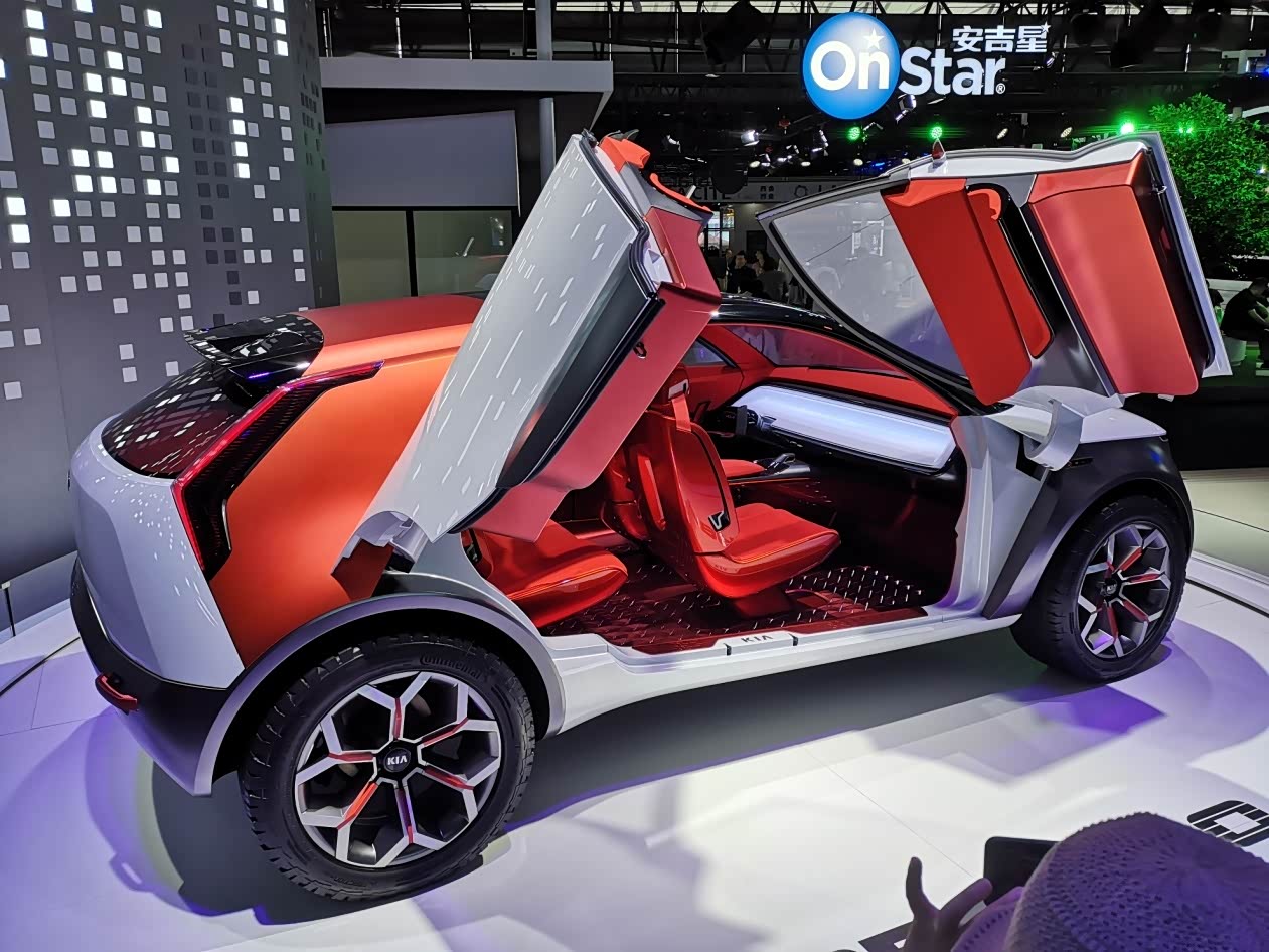 穿过商业宣传目的大于技术革新意义的雪佛兰安吉星展台,我们来到起亚展台。