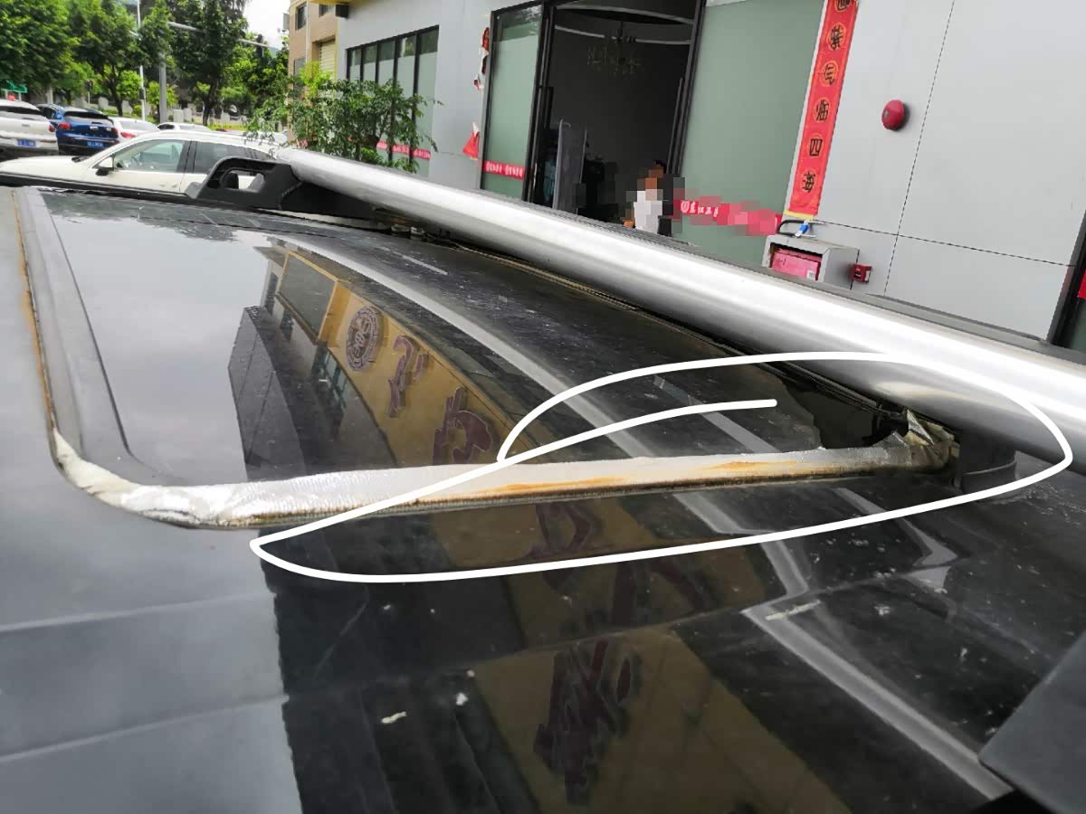 车主自行粘了胶布,感觉治标不治本 ,手摸地毯还是有一点湿,还没干……