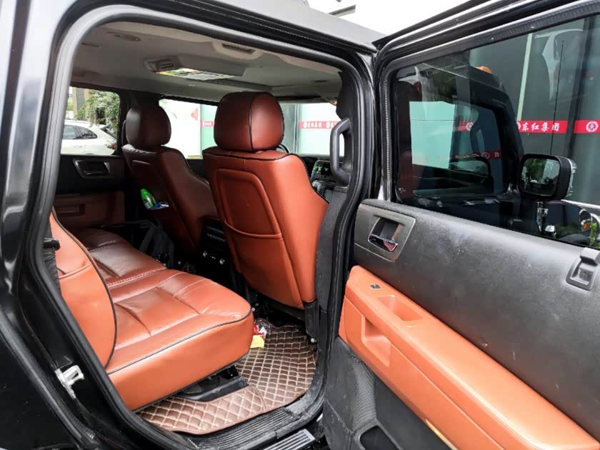 H2内饰已经趋于豪华风格,枣红色真皮充斥着整个车厢,包括副驾的扶手,民用豪华轿车的多功能方向盘和触摸式DVD带倒车显示屏在这辆车上也能找到,看到这些,仿佛让人忘却H2的血缘关系,倒是像进入了一台普通豪华越野车内。