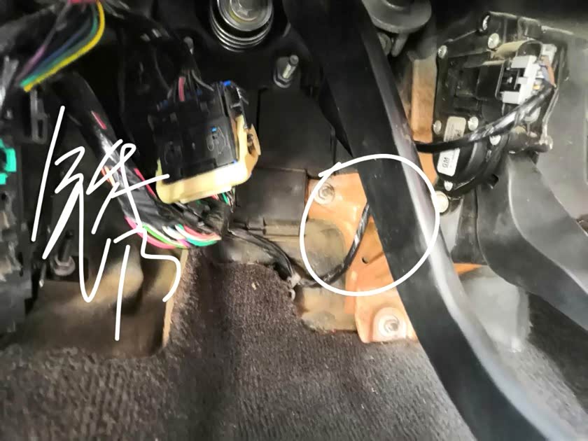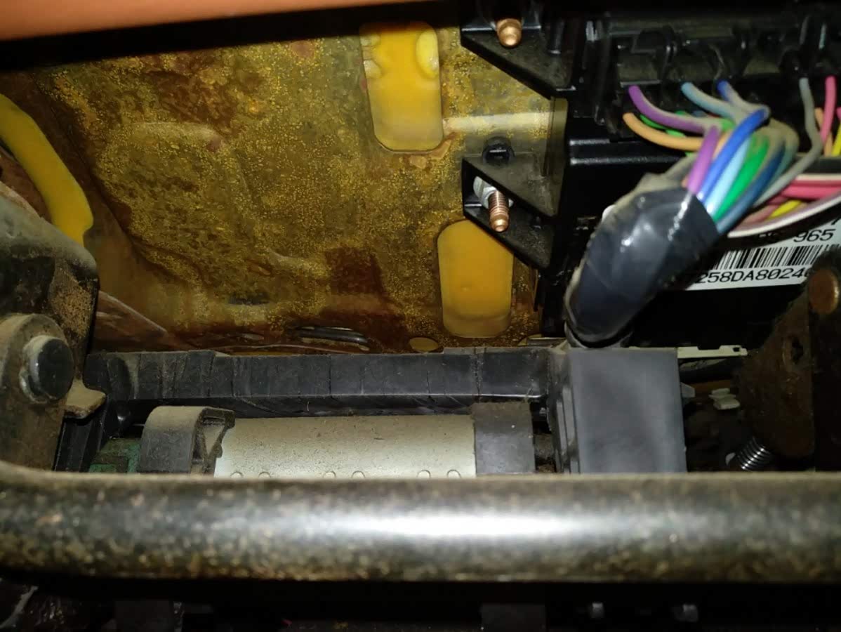 中控台下的线路布局比较凌乱,转向柱生锈严重。