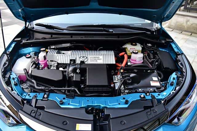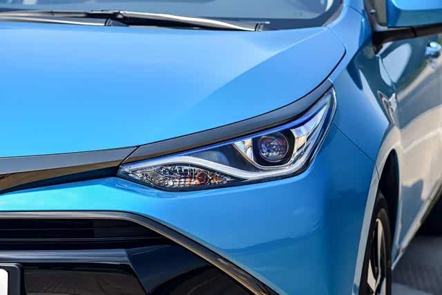 换上了蓝色的丰田新能源车标,并加入了蓝色饰条点缀,可以与普通版本快速区分开来。