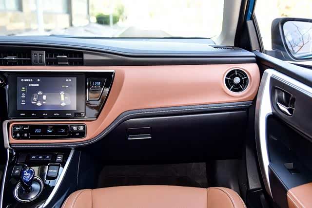 坐进雷凌双擎E+的车内,你会感觉和普通汽油版双擎好像没什么不同,只是在一些细节上有些小变化,例如采用了黑棕双色拼接的内饰,全新的8英寸中控彩色屏幕,支持触控操作,响应速度也很流畅,并且支持百度的Carlife。