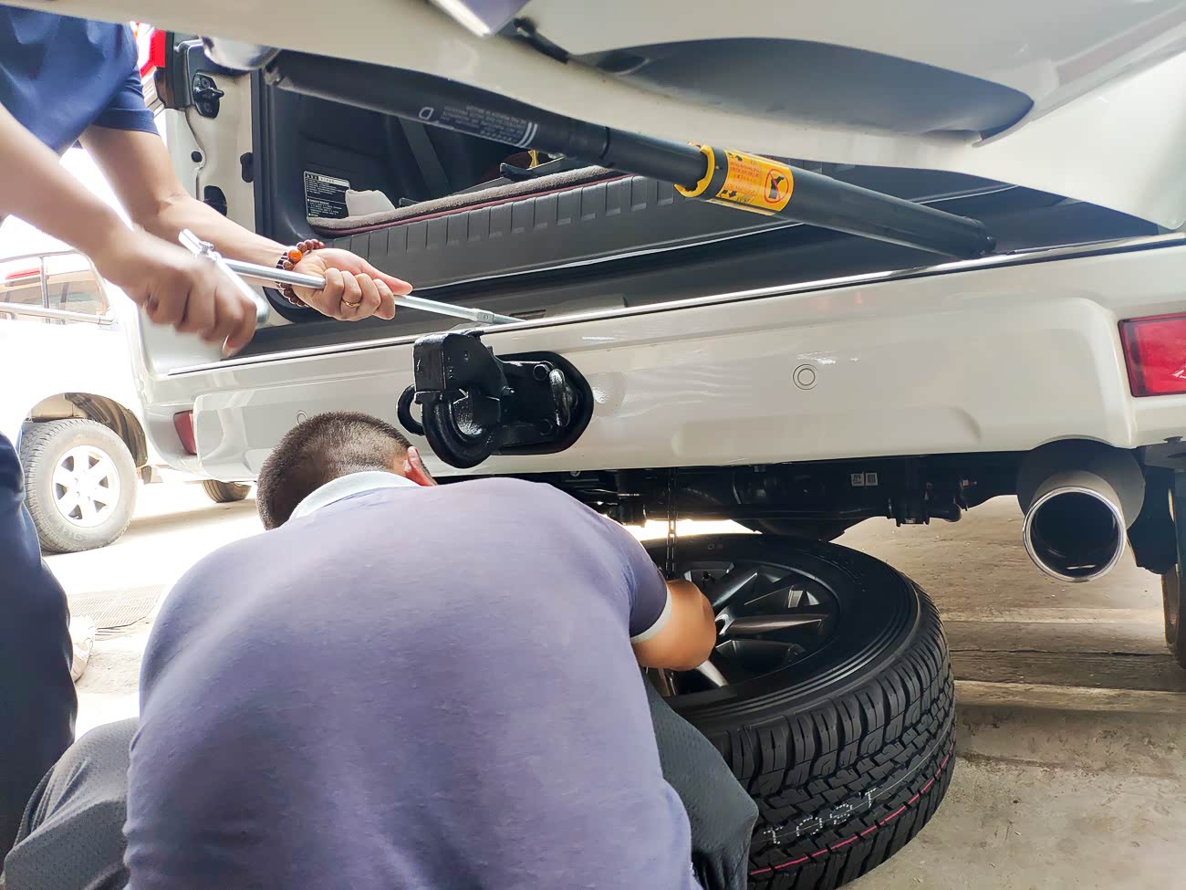 随后转动螺杆即可轻松将备胎升至指定位置;