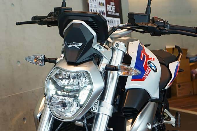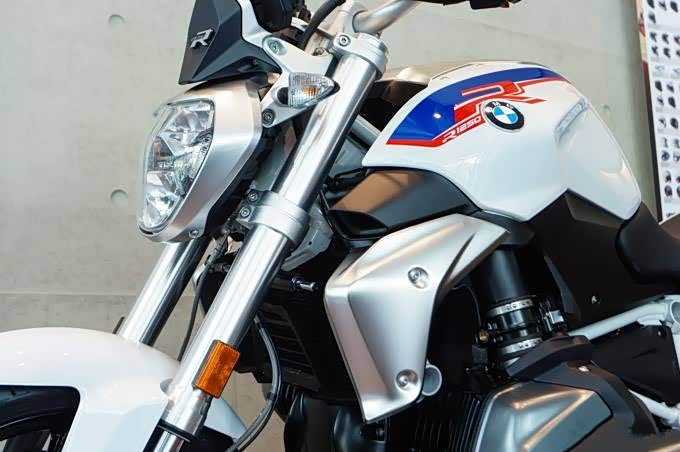 2019款R1250R头灯部份造型不变,内部新增了LED定位灯,上方的仪表支架加装了黑色外壳,上面还有R1250R立体字样。