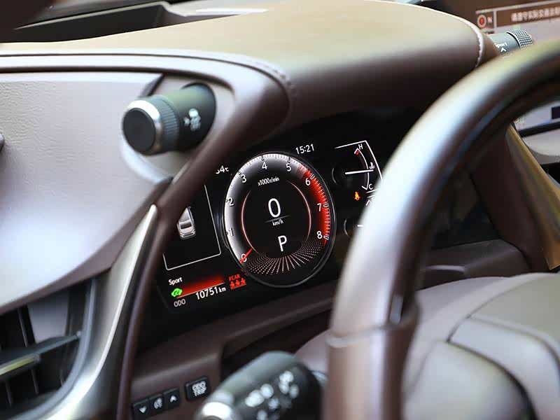 方向盘加入了实木材质,3点和9点位置的皮质非常柔软,皮质细腻握感出色,让人爱不释手。运动型液晶仪表颇有LFA的神韵,不同模式下的显示也截然不同,Sport模式下会以白红双色示人,Eco模式下则全由蓝色代表。