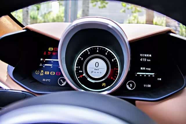 当我打开车门的时候,我一下对这个内饰又爱又恨,爱是因为内饰整体被真皮所覆盖,您能看到的地方基本都是真皮,就跟不要钱一样,心中默念:万恶的资本主义。恨的地方是,相比翻毛皮、碳纤维的装饰,这个内饰看着太“老气“了,没有一丝活力,要不是微微上翘的“天鹅门”我还真的会以为我进错车了。