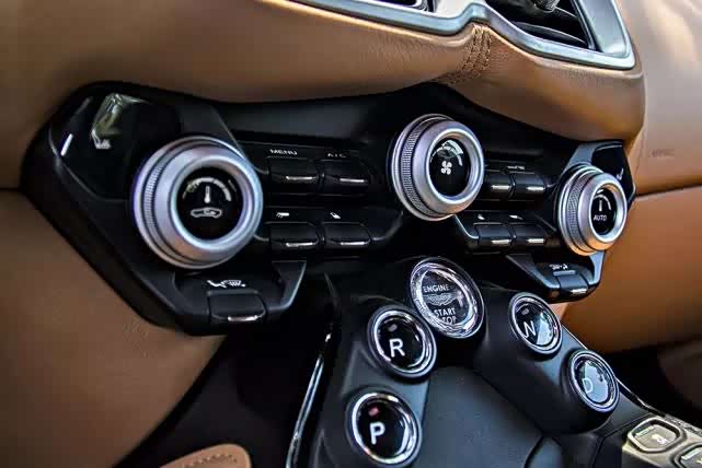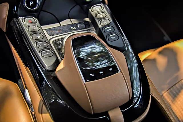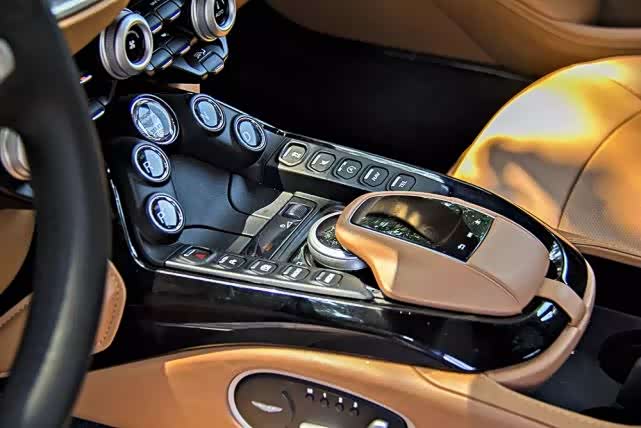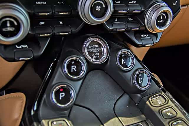 在按键换挡后方也是密密麻麻放置了一堆功能按钮,比如发动机自动启停,倒车雷达关闭等等,这种罗列的设计看着有些密集,而且最关键的是按钮质感真心挺一般的,按上去还有一些松垮感觉,一瞬间觉得这是180多万的阿斯顿·马丁吗?