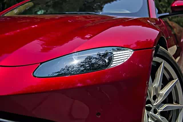 前大灯尺寸非常小,小到你感觉与车头并不搭,整体风格我个人觉得不如DB系列看着犀利,灯舱内部配有阿斯顿·马丁标准样式的LED透镜,照射范围和效果都没的说,只是样式感觉怪怪的。其实V8 Vantage车头设计就感觉是一位优雅的男士,但是单独看五官都觉得有一般,但是融合在一起再看,也是蛮帅的。