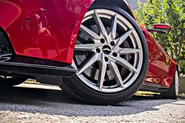 轮胎方面,V8 Vantage配置倍耐力P ZERO系列轮胎,前轮胎尺寸为:255/40 R20,后轮胎尺寸为:295/35 R20,轮辋为20英寸锻造轮辋,个人觉得轮辋样式可以更加激进一些,另外如果制动卡钳喷涂其他颜色就更棒了。