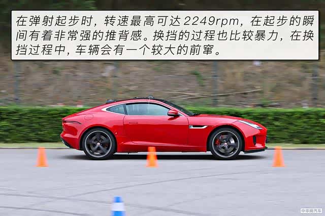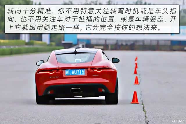 捷豹F-TYPE P300采用了前后双叉臂悬架,这也是赛车、跑车中常见的悬架类型。双叉臂悬架有着横向刚度大、抗侧倾性能优异、抓地性能好、路感清晰等优势,再加上英国国宝级的米拉调校的功力,让F-TYPE能够在绕桩测试中一展身手。最终经过多组测试后,P300入桩最大速度达70.2km/h。