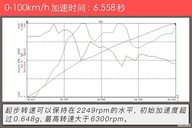 捷豹F-TYPE P300在整段测试过程中,8AT变速箱在换挡时顿挫感较强,尤其是换挡过程中,车辆会有明显的前窜,当变速箱与传动轴再次连接时又会顿一下,虽然换挡间隙很小,但是依然造成了不小的冲击感。最终经过多组测试后,捷豹F-TYPE P300的0-100km/h加速成绩为6.558s。