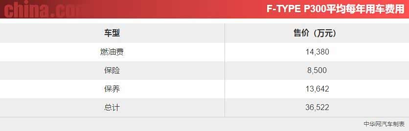所以结合油耗、保养、保险等费用计算下来,捷豹F-TYPE P300的用车费用为每年36,522元,要比同价位BBA的用车费用贵了1万5千元左右。所以捷豹F-TYPE P300虽然是一款好玩好开的车,但是也算是比较烧钱的车型了。
