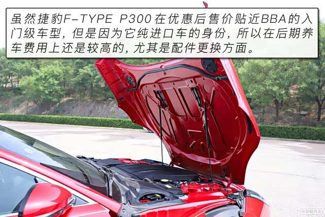 捷豹F-TYPE P300在各种优惠后,售价已经快接近BBA的入门车型了,不过保养维修这一块还是受制于进口车的因素要比BBA都高,所以买捷豹F-TYPE的朋友一定也要考虑一下往后的用车成本。