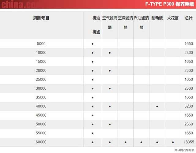 捷豹F-TYPE需5000公里一保养,所以在保养的成本上要高出BBA同价位车型接近一倍的价格。