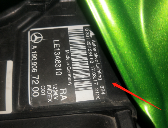 大灯出产日期为17年3月份,符合车辆生产日期,一般前部发生过严重撞击后,大灯都会破损更换,结合外观漆面的检测结果,可以排除前部事故的可能性。