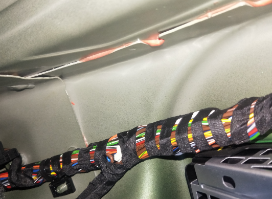 打开后备箱,内侧叶子板结合处以及围板内侧接口处,焊点均匀线束规整,没有发现钣金敲打修复或褶皱痕迹,结合之前的外观检测情况,可以排除后部事故追尾的可能性。