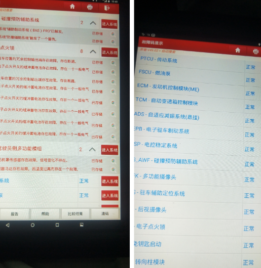 最后,进行OBD系统检测,经过一段时间的读取,显示车身电器系统存在多个故障码,好在都是电瓶电压低导致的不良信号,经过消码后故障消失,不会影响正常行车。