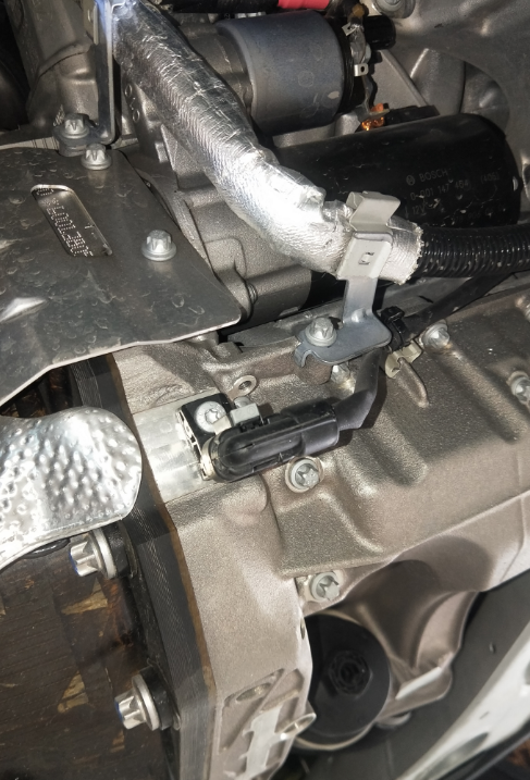 来到发动机底部尾部,没有发现渗油和拧动修复痕迹,发动机变速箱接触部位螺丝也无拧动痕迹,变速箱油底壳也没有漏油,同样为了达到更好的散热和减重效果,变速箱处应用了非常罕见的材质。