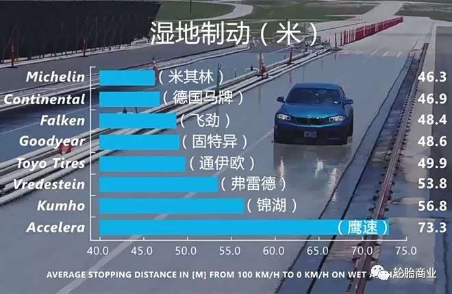 米其林的湿地制动再次超过德国马牌拿到第一,飞劲以稍稍劣势位居第三,固特异与通伊欧湿地的表现也非常不错。