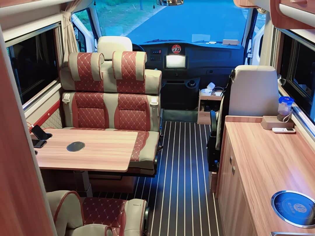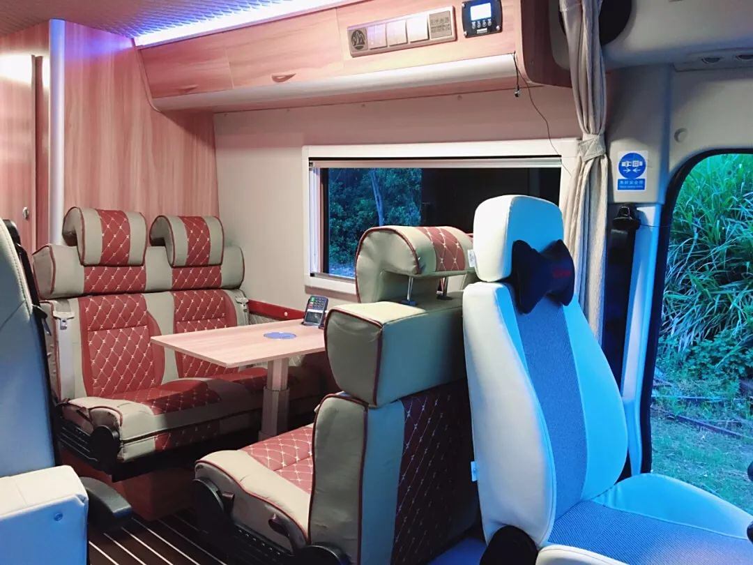 移步车内为营造更为宽敞的室内空间,新车还取消了副驾驶车车身侧门,和不起眼的外观相比,室内去极为“奢华”,高端房车配备的硬件一一俱全,出宽大隔断座椅和吧台外,新车配备了双开门冰箱、电磁炉、洗菜盘、独立马桶以及淋浴喷头等,并且车外配备了3500毫米的遮阳棚,出门在外怎能少得了阳光和沙滩呢。