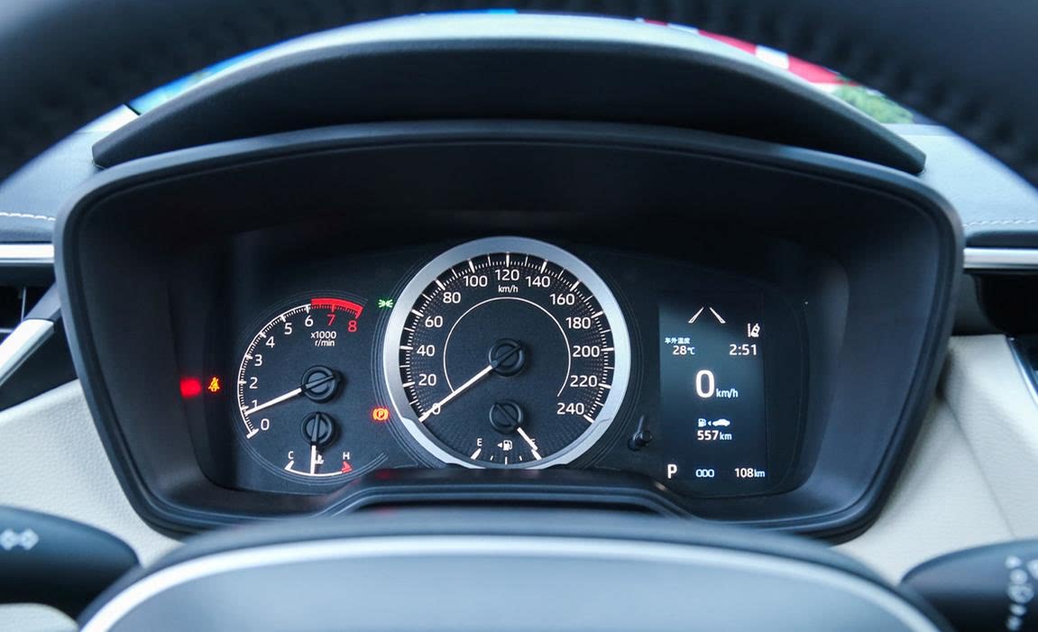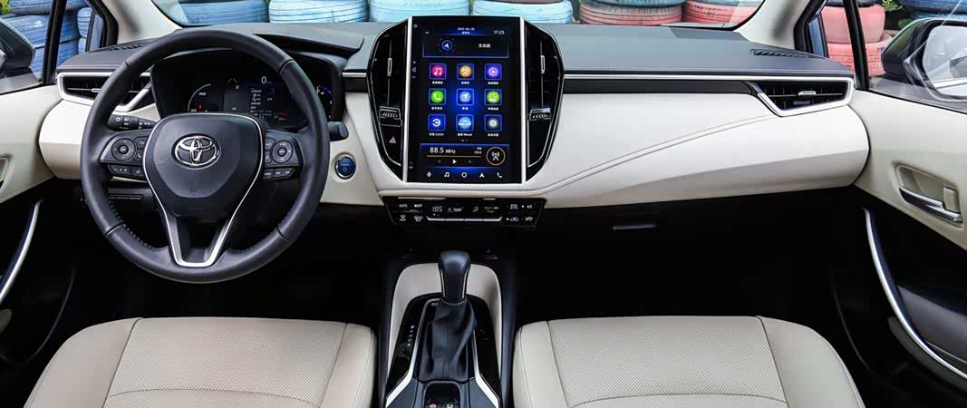 上一期提到过,目前新卡罗拉公布了两款燃油版本与一款双擎版本,正好我们可以进行比较,首先,看一下1.2T+CVT版本卡罗拉的内饰吧,皮质三幅多功能方向盘,大量软性材质,双缝线,扶手与空调出风口镀铬饰条,中控的钢琴烤漆材质,车内质感还不错。
