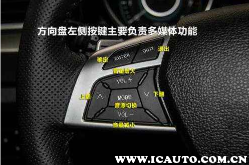 首先是方向盘,一般来说,多功能方向盘左右两边会集成音响控制和仪表盘信息中心控制,另外还有一些配置也会放在方向盘上。
