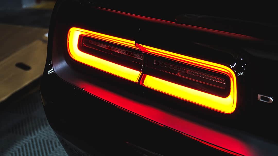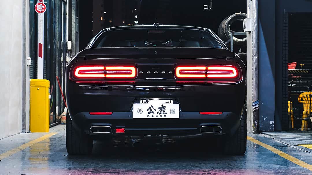 与外形设计逐渐向时尚、流线倾斜,长相越来越像欧洲跑车的Mustang和Camaro不同,道奇Challenger不在乎“降低风阻”、“减少盲区”、“跟上时代潮流”。笔直的线条、方正的轮廓、宽大的胯部、贯穿式尾灯、四圆形前大灯~这些都是Challenger在上世纪70年代最经典的设计语言。