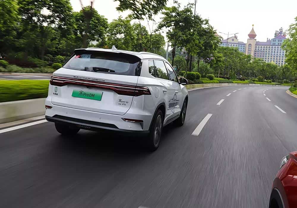 车尾的4.7秒才是对宋Pro DM最好的诠释。三擎四驱和双擎四驱最主要的差别是在于前轴时候搭载了电机,三模则是搭载了前后电机和发动机,双模则只是发动机+后轴电机。