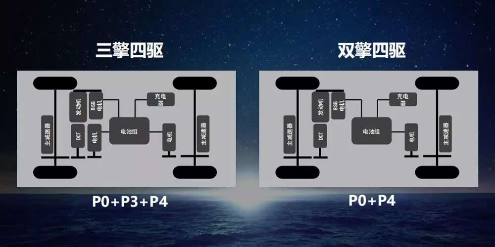 两种版本,三擎四驱和双擎四驱,差别在于是否有前轴电机