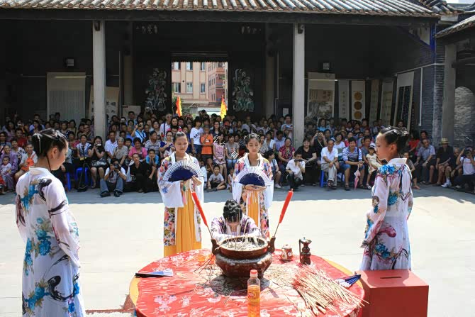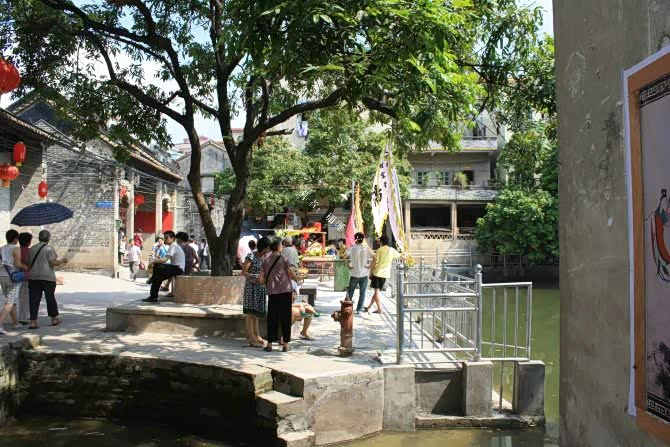 其中在文化社的梅隐公祠前有一个水浸社,供奉“社稷之神”。神位半浸浴水,上香须涉水而过。珊珊三丫头一直记得当时有个老人介绍这里时,重复着一句:到了水浸社,唔浸唔安乐。因为水浸社稷坛设于水中,文华社的潘姓族人们必须涉水才能到社坛,像是在考验每一个上香者的诚意。后来几年,珊珊三丫头来珠村的时候,总会看到这位老人在为游客热心的介绍着村里的历史。