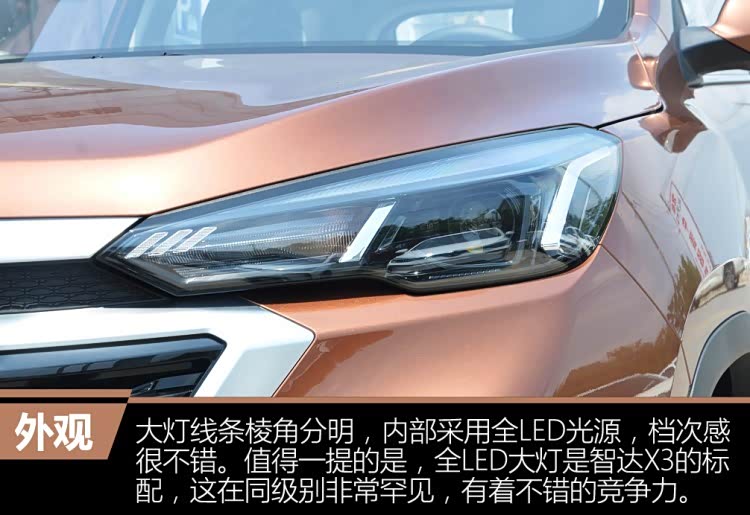 作为一款小型SUV的“菜鸟”,智达X3的外形与内饰都没有太多华丽的设计,但乘坐空间和部分配置还是很不错的,特别是全系标配LED大灯,这在自主小型SUV里是非常少见的。另外,智达X3的价格很不错,之前就提到过,价格分隐形和看得见的,隐形指的是1.5L车型价格都比较低,特别是入门的还不到5万元,但它们都是国五版车型,很多已经实行国六标准的城市是买不到的;而看得见的指的是智达X3是最便宜的配备1.5T发动机的车型,最低的那款还不到6万元,而同级别对手这个价位都是1.5L或1.6L的,在动力上,智达X3有明显优势。总的来说,智达X3这款以实用为主的新车还是值得大家去期待它的市场表现。