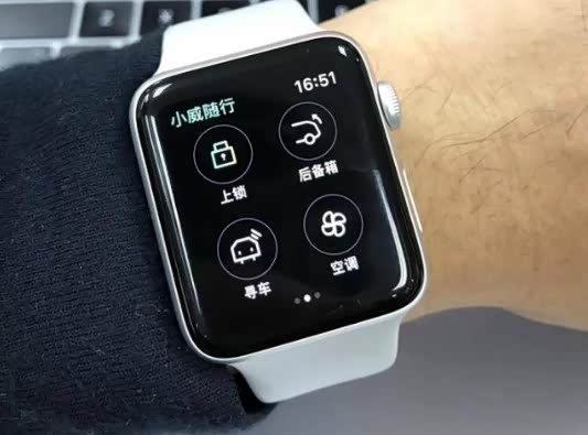 除了实体钥匙本身的「无钥匙进入」功能外,威马支持手机蓝牙钥匙、App 远程控制功能,同时威马还实现了与 Apple Watch 的互联,你可以通过手表来查看车况、进行解锁车操作。