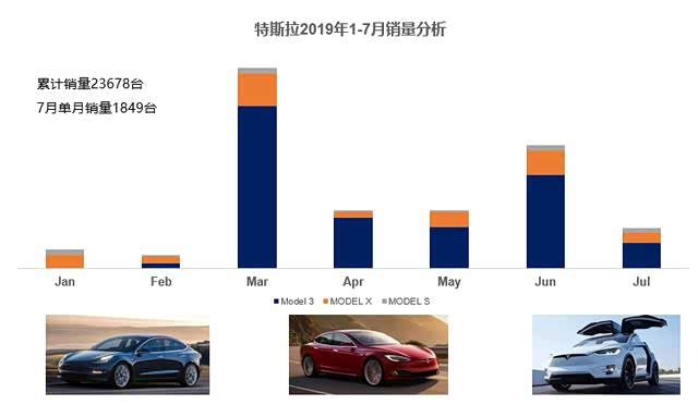 今年前7个月,新能源领域热度最高的品牌,小编投给特斯拉,相信没有太多人会反驳。今年前7个月,特斯拉在华累计销量23678台,其中Model 3累计销量17451,Model X累计销量4899,Model S累计销量1328,分月走势如下所示。