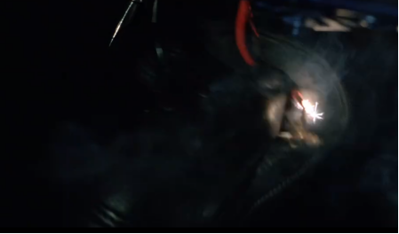 然后拿刀撬开中控台下方,拔出两根线接在一起,噼里啪啦冒点火花,然后车就点火启动了,开着偷来的车潇洒离去。