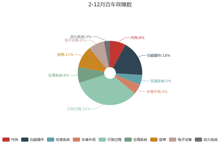 百车故障数即平均每百辆车中出现的故障数,包含故障、异响、使用不便等问题,百车故障数值越小,代表质量越好。