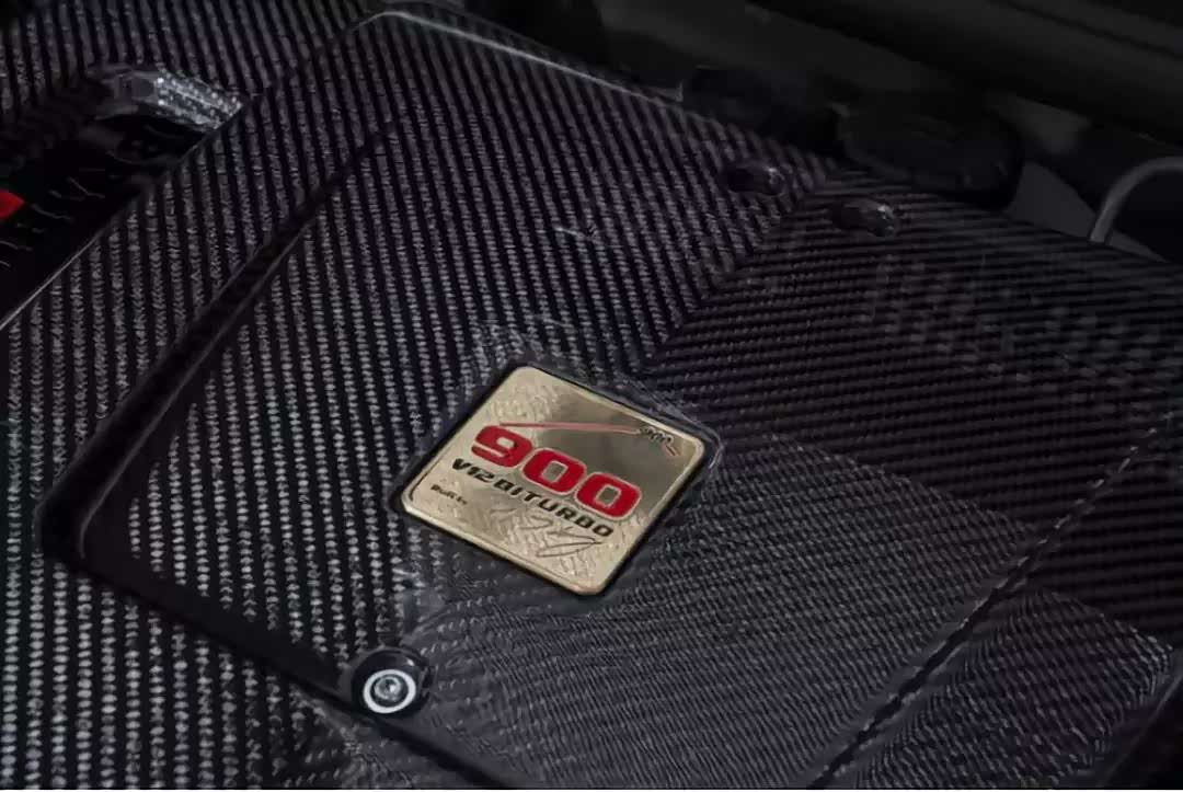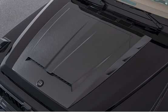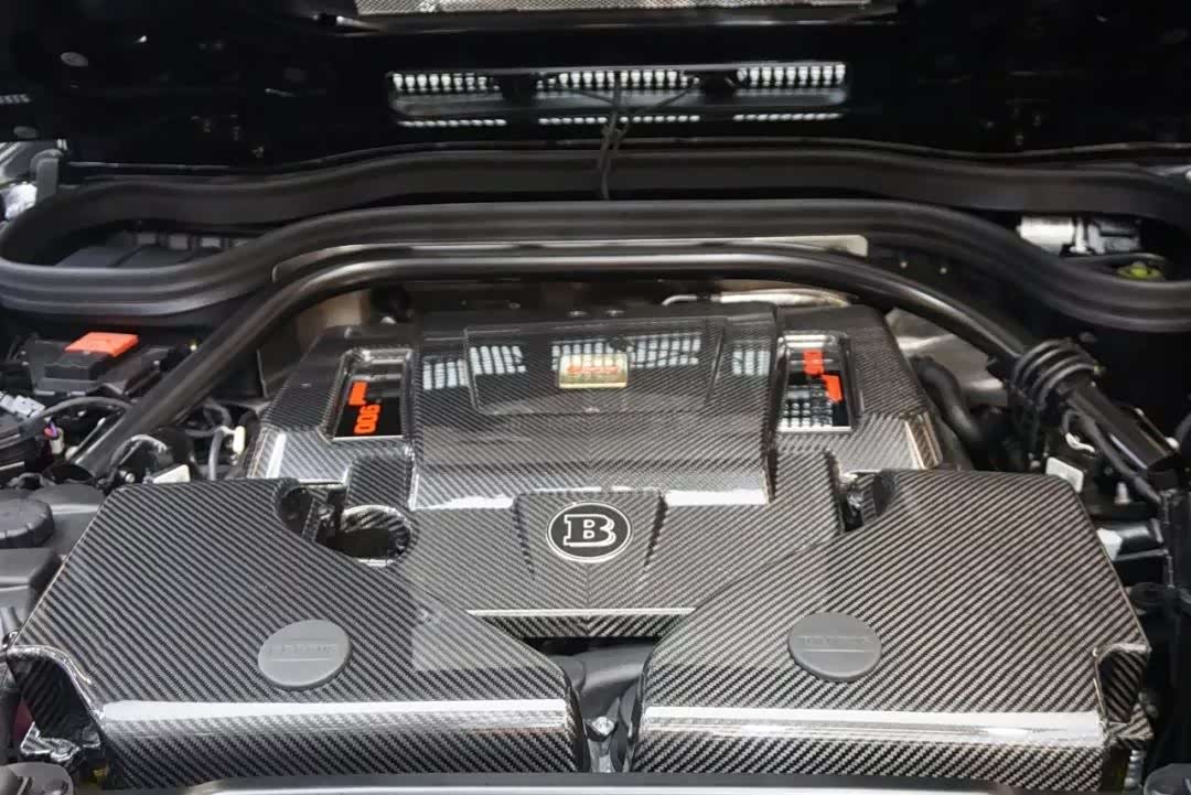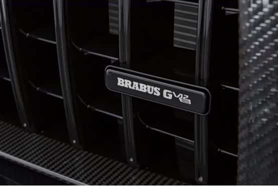 除了引擎盖是用碳纤维材料打造以外,还有碳纤维水箱保护罩、车侧的碳纤维通风口、碳纤维尾翼以及前下保险杠等大量碳纤维配件。此外,Brabus G V12 900还采用了全套黑色炫酷包围以及宽体,相比G63更为运动,炫酷!
