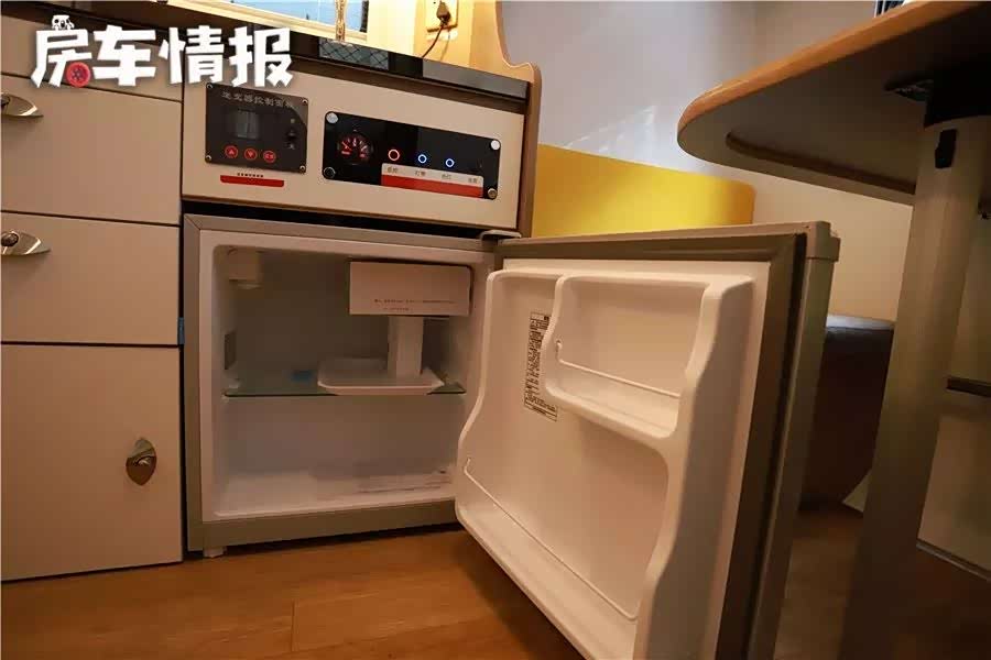 车厢中部的餐厨区域都是用环保材料组建而成。橱柜、吊柜、衣柜都是房车专用环保轻质板材,再加上环保耐磨的PVC地板革,没有一点有害物质的味道,保障用户身体健康。静音水槽,车载冰箱和抽拉式储物柜方便储存、处理食材和厨余垃圾。使用220V插座可以外接烧水壶或电磁炉,做顿简餐也不是问题。