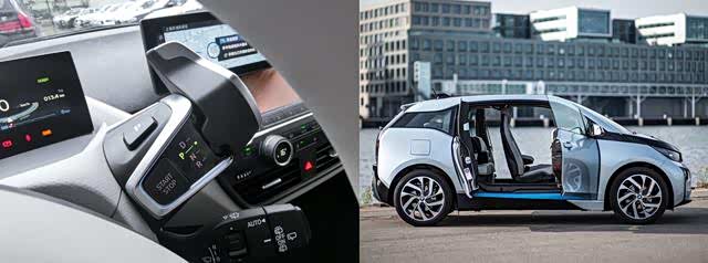 按理说i3作为宝马旗下车型,是应该跟随惯例用宝马特有的大鸡腿档把才对的,但是它却一反常态,用上了怀挡,相当有个性。而且它的这个拨杆还和主流的拨杆不一样,人家的真的是杆,它的杆却快和棍一样粗了,相当奇特。更奇特的是它还用上了和劳斯莱斯同级的对开门设计。