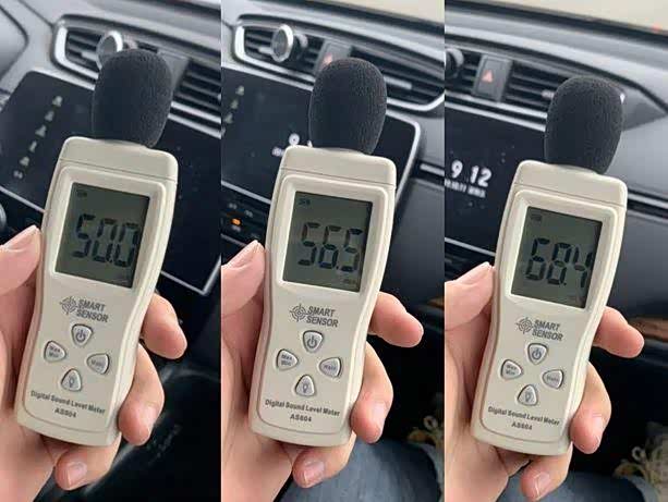 在试驾过程中,厂家找来了两款同级别的日系燃油车进行对比,在进行噪音测试时,宋Pro DM与两款日产进行噪音对比结果显示,比亚迪Pro DM时速90km时音噪只有59.8,