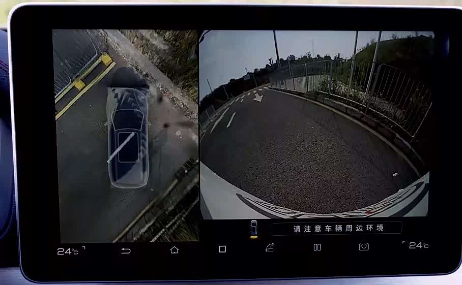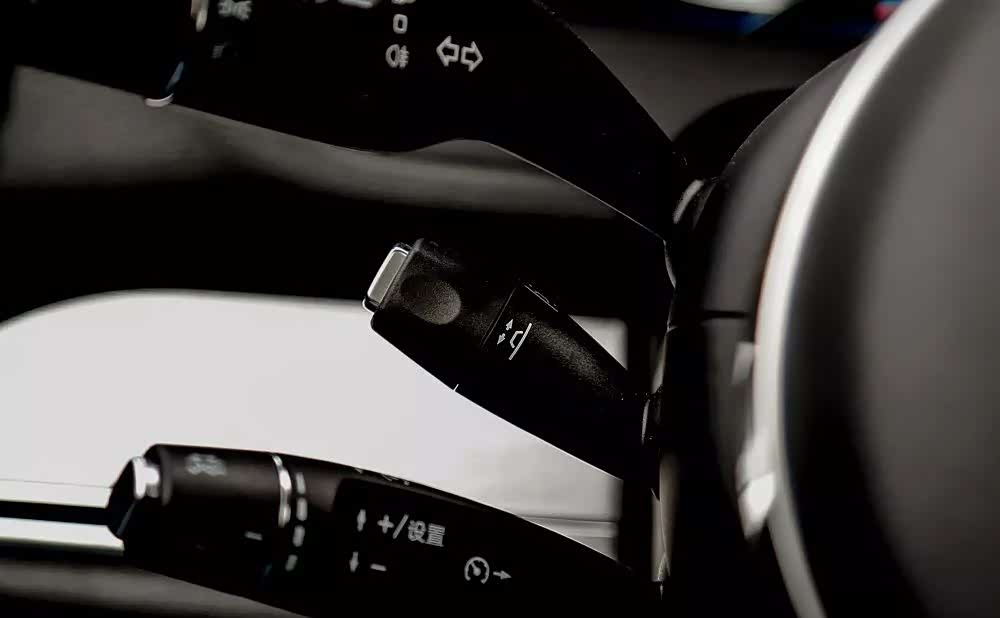 可电动调节方向盘的控制键在方向盘的左下方,可前后上下四向调节,设计师将其做了异形处理,不会影响到灯光按扭。再就是方向盘右侧的功能键,可旋转大屏,及对屏显内容一键切换成车体周围路况,在狭窄空间行车很实用。