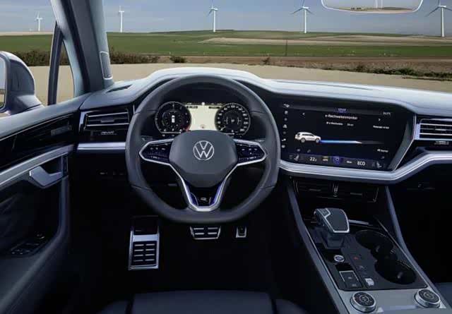 内饰和普通的途锐的区别不大,R标识出现的次数更多,例如带有“R”标的多功能方向盘、迎宾饰板,带有标志性的蓝色缝线真皮座椅等,似乎无时不在提醒车内的人这是一台带“R”的大众车。对了,这车还配备了车速达250km/h仍可用的辅助驾驶系统。