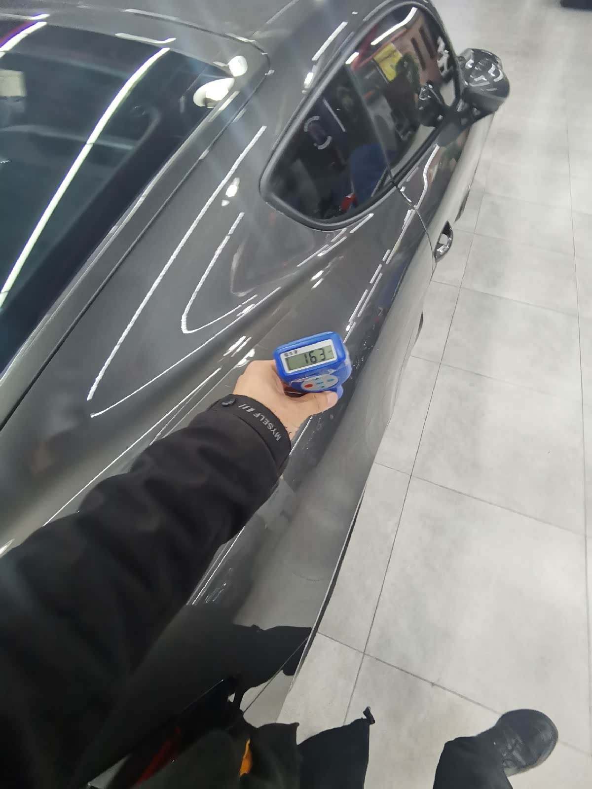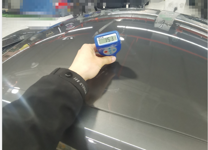 小东首先测了一下大顶的漆面数值,数值在150左右,属于正常的数值。一般车的大顶是不会喷漆的,所以我们可以以大顶漆面厚度作为基准数值。但是还是要分情况的哦!刚开始检测小姐姐就走过来,对小东说:车况靠你喽!